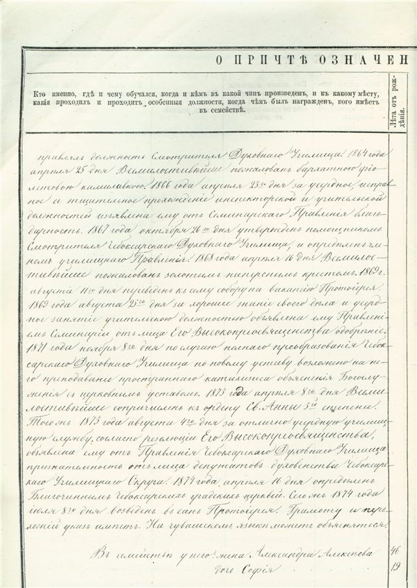 1875 г. - Сведения о жизни и деятельности священника Сильвестра Богородицкого из клировой ведомости Введенского собора.