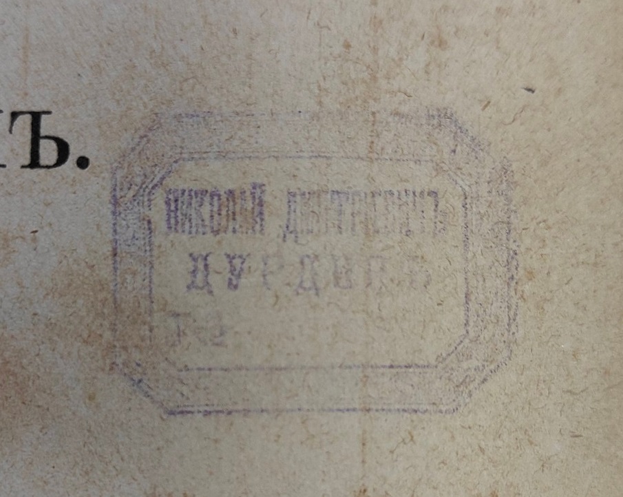 Другие знаки на книге: 1) штемпель «Чуваш. одногодич. курсы| марксиз-лениниз. им. т. Сталина| библиотека»; 2) штемпель «Чебоксарская| совпарт. школа| библиотека»; 3) штемпель «Библиотека| Дома политпросвещения| Чувашского обкома| КПСС», 4) штемпель «Национальная| библиотека| Чувашской Республики».
