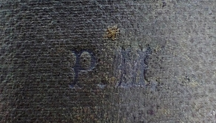 2) Суперэкслибрис на корешке переплета, без рамки, 5х11, блинтовое тиснение, буквенный, с инициалами: «Р. М.».