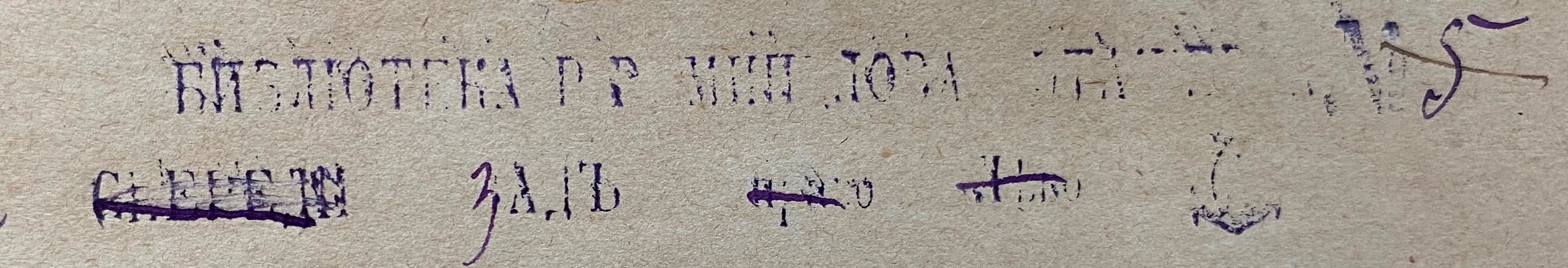 Другие знаки на книге: штемпель «Чувашская| Республиканская| Библиотека| им. М. Горького».