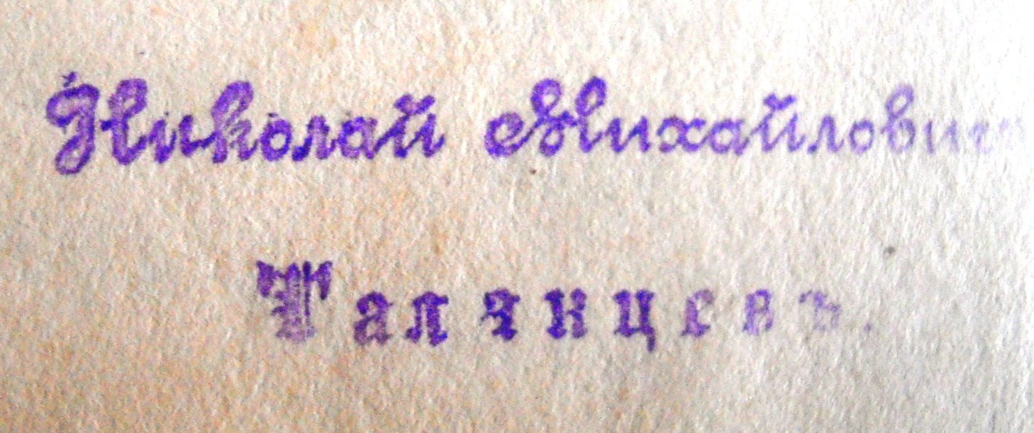 2) Штемпель, без рамки, 8×32, шрифтовой, с надписью: «Николай Михайловичъ| Таланцевъ».
