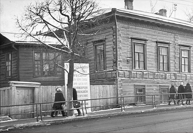 Деревянный дом по улице К. Маркса, д. 4, где в 1871-1945 гг. находилась Чебоксарская общественная публичная библиотека. Фото XX в.