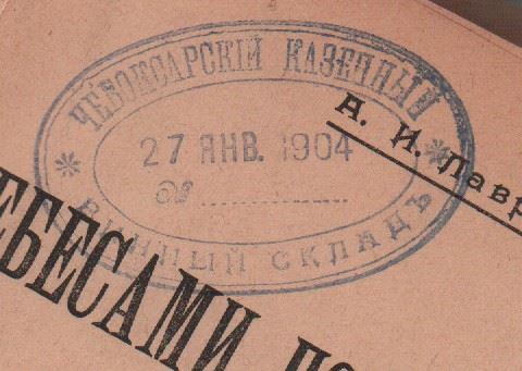 На книге: Лавров, А. И. Небесами побежденные : историческая повесть. – Санкт-Петербург : Изд. П. П. Сойкина, 1901. Инв. № 256