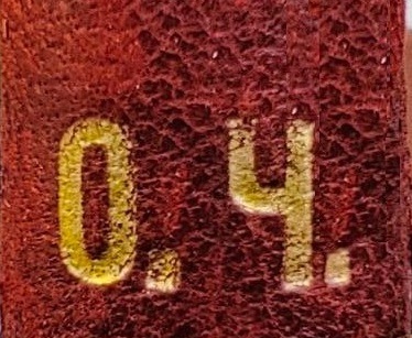Суперэкслибрис на корешке, без рамки, 5х10, золотое тиснение на коже, буквенный, с инициалами «О. Ч.».