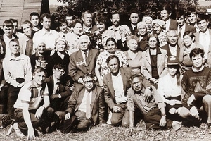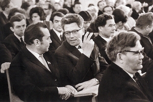 Участники пленума Союза композиторов СССР, проходившего в сентябре 1967 г. в Ленинграде. Представители Чувашии - Ф.М. Лукин, В.А. Ходяшев (в центре), слева от него М.И. Денисов, справа - Г.Я. Хирбю, в первом ряду – Ф.М. Лукин.