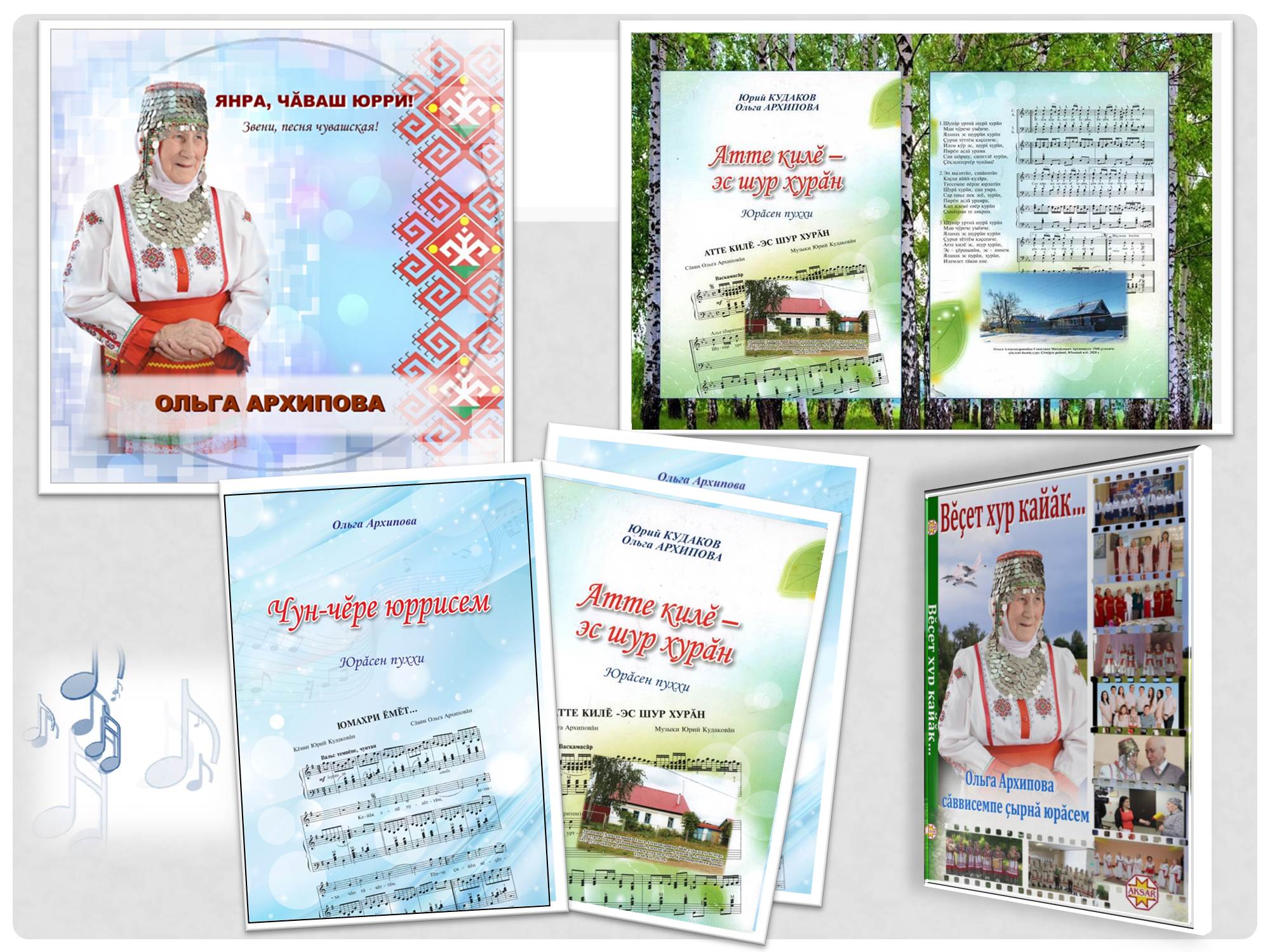 Песенные сборники «Отчий дом ты – белая береза» (Атте килӗ эс – шур хурӑн) и «Мелодии души и сердца» (Чун-чӗре юррисем) являются живым источником как для народных коллективов, так и для современных музыкантов»