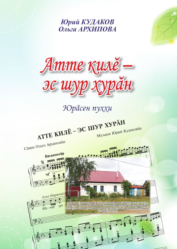 Кудаков, Ю. Д. Атте килӗ - эс шур хурӑн : юрӑсен пуххи : пӗччен, иккӗн, хорпа юрламалли юрӑсем тата шкул ачисем валли ҫырнӑ юрӑсем / Юрий Кудаков, Ольга Архипова ; [В. С. Архипова, М. Ю. Севастьянов пухса хатӗрленӗ]. - Чебоксары, 2022. - 95 с. – Перевод загл: Отчий дом - ты белая береза : песни для сольного, ансамблевого, хорового исполнения и песни для школьников.