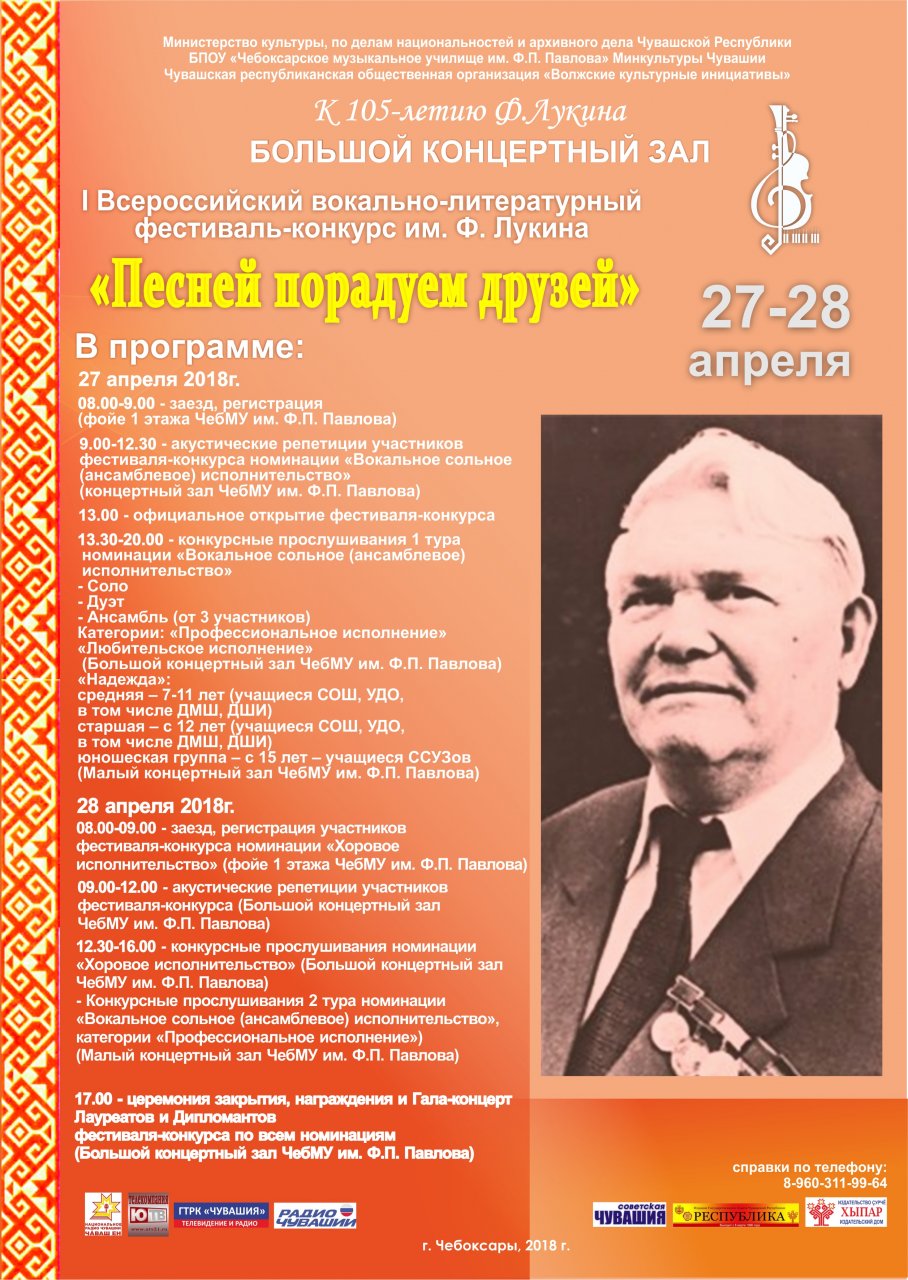 Программа I Всероссийского вокально-литературного фестиваля-конкурса им. Ф.М. Лукина «Песней порадуем друзей» |