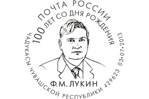 Памятное специальное гашение к 100-летию со дня рождения Ф.М. Лукина.