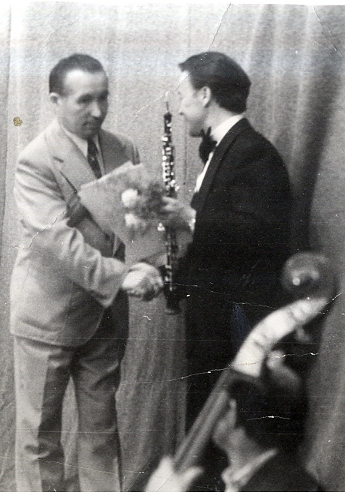 Анисим Асламас с Анатолием Любимовым после премьеры концерта для гобоя с оркестром в ЧМУ им. Ф. П. Павлова. Май 1979 г. |